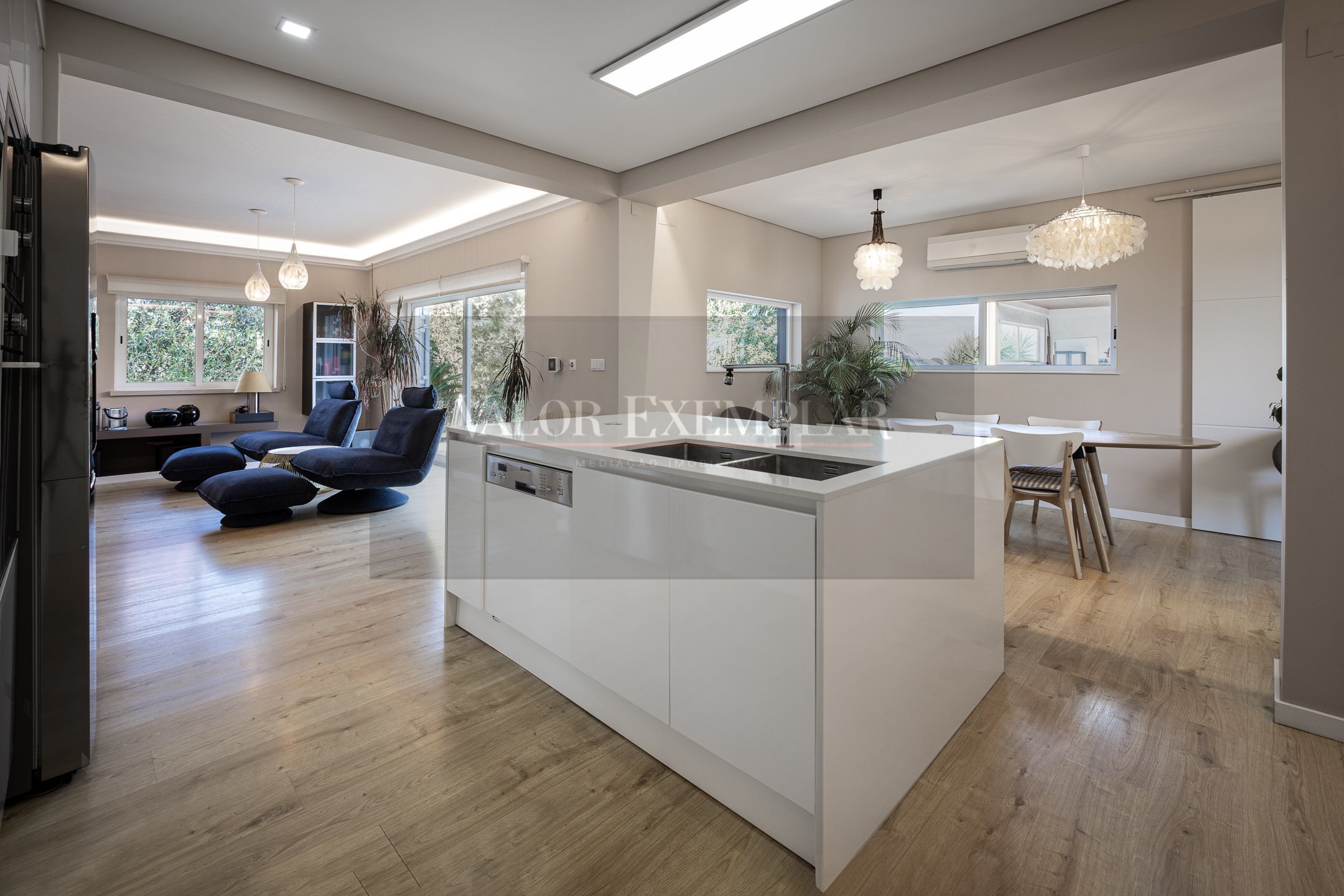 A outra sala é espaçosa é o ideal para relaxamento, e janelas panorâmicas que se abrem para um terraço, oferecendo vistas maravilhosas da piscina e da natureza envolvente. Neste espaço tem cozinha e zona de refeição.