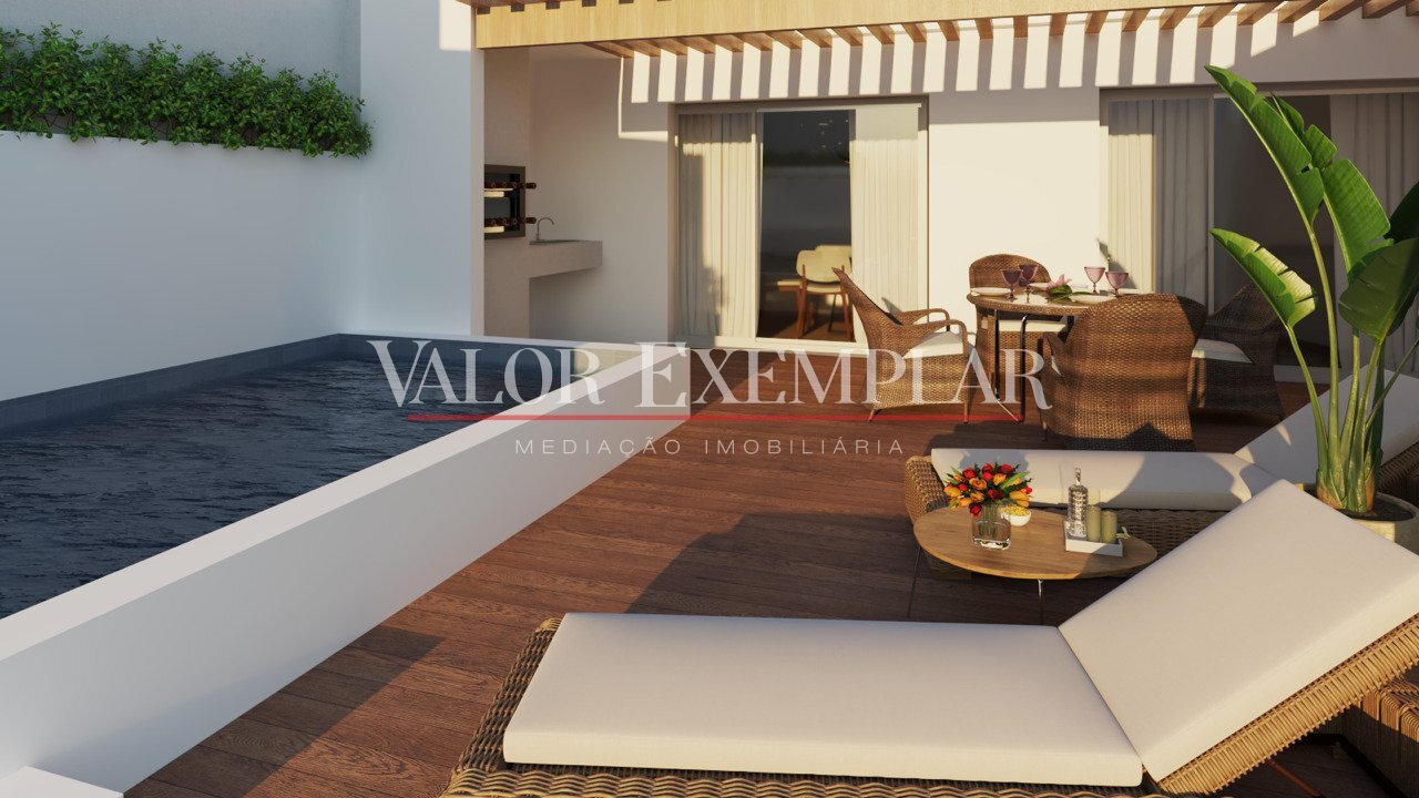 No rés-do-chão, uma suite e um WC social garantem praticidade no dia a dia. A sala ampla, adjacente à cozinha, proporciona um espaço perfeito para momentos em família ou com amigos, com vista para o logradouro e a piscina. A lavandaria e um WC adicional aumentam ainda mais a funcionalidade desta moradia.